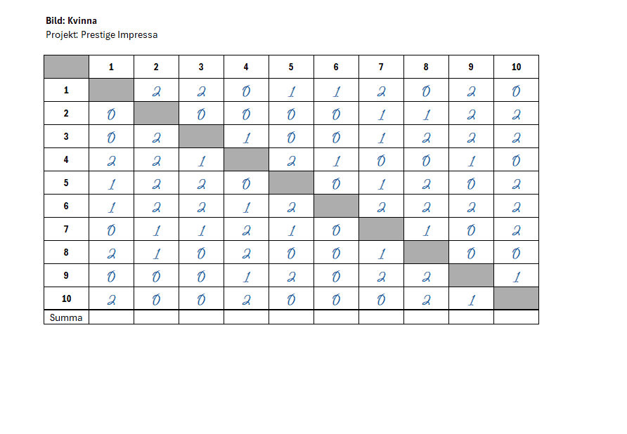 Bedömare granskar bilderna och fyller i sina svar i de utskrivna tabellerna.