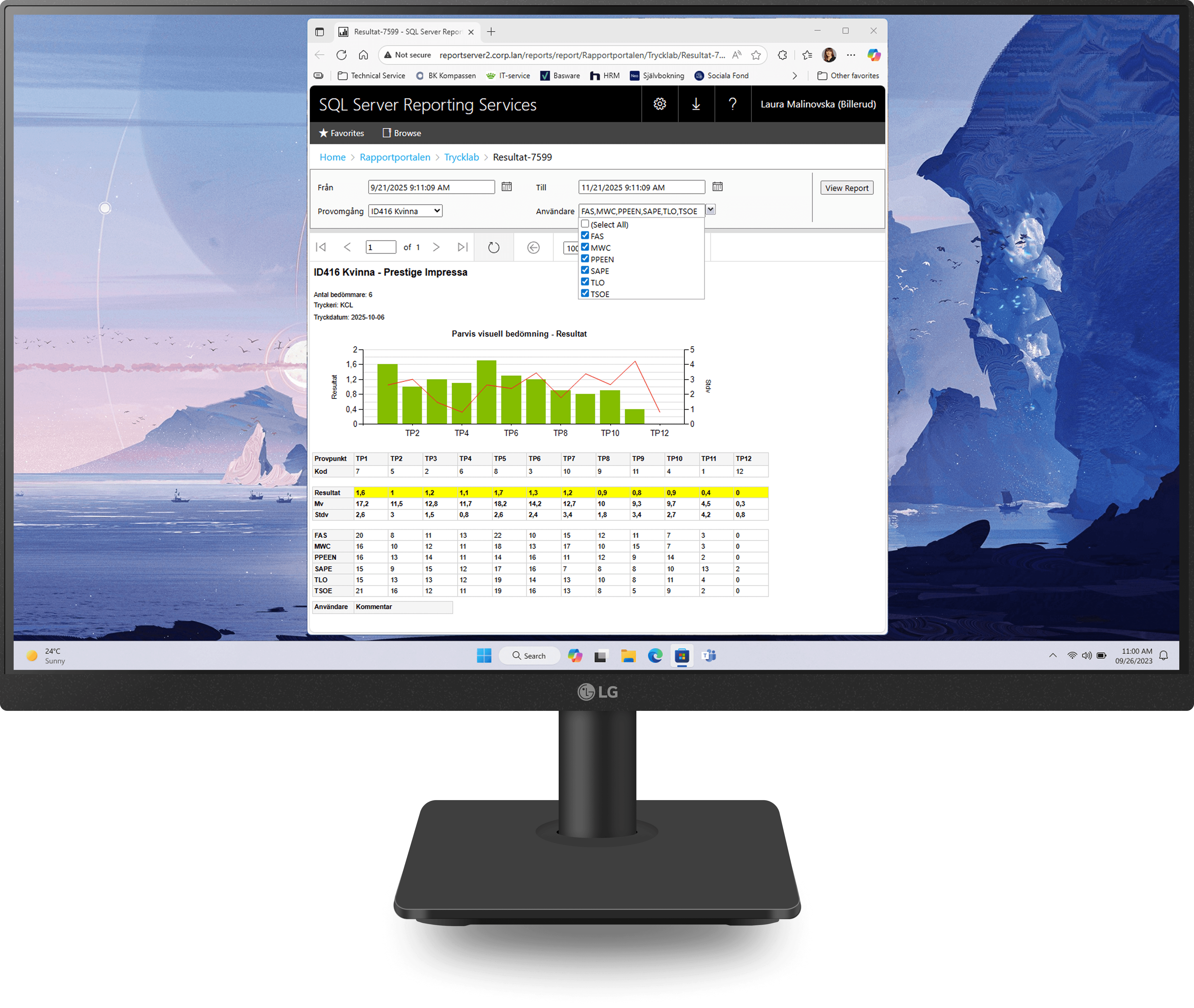 Nästa steg hade kunnat vara att ge dem och personalen möjligheten att generera rapporten efter specifikt utvalda provpunkter.